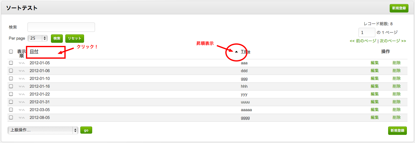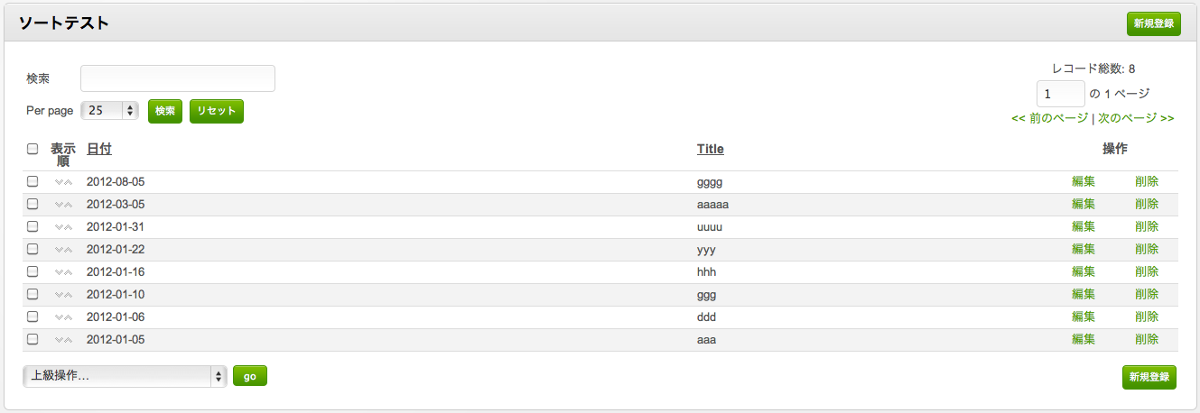 上記のように設定していますが、入力したデータの管理画面では、入力した最新のデータが一番下に並んでしまいます。